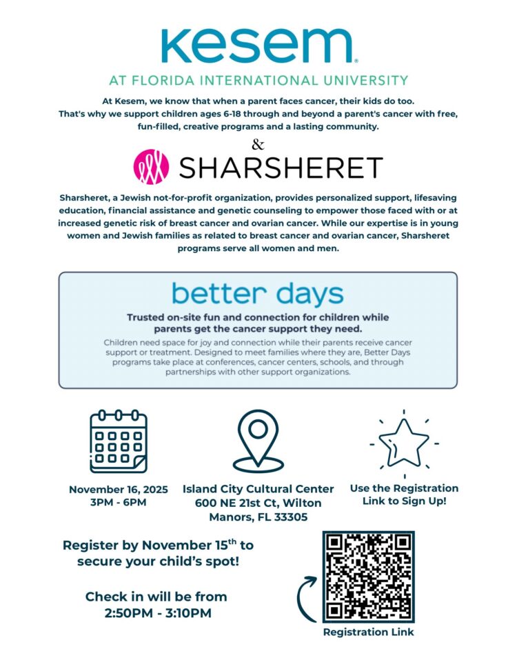 Join Kesem and Sharsheret for Better Days programming with kids and parents.