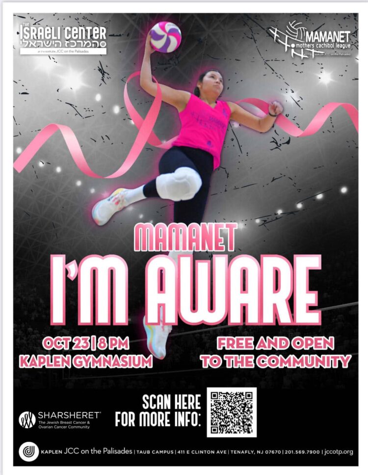 Join the Kaplen JCC on the Palisades Israeli Center, Sharsheret, and Mamanet for I’m Aware on Wednesday, October 23 at 8 PM in the Kaplen Gymnasium. This free community event brings together sport, strength, and solidarity in honor of Breast Cancer Awareness Month, featuring partnership with Sharsheret. All are welcome!