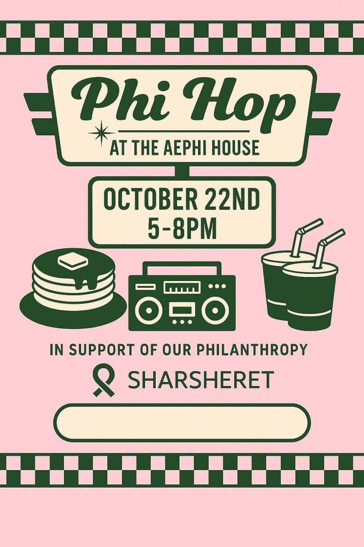 The sisters of Alpha Epsilon Phi will host their annual Phi Hop event followed by a Sharsheret Pink Shabbat during parent’s weekend. The sisters will raise awareness about breast and ovarian cancer, the importance of learning your family health history and the measures one can take to safeguard their health.