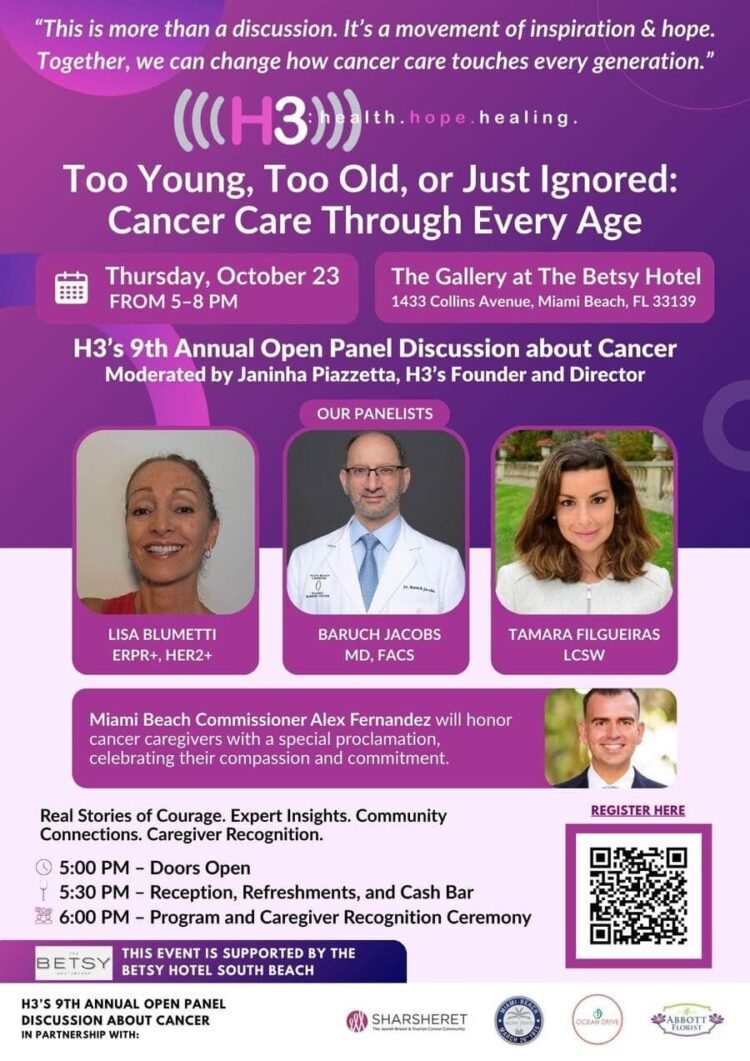 « All Events Too Young, Too Old, or Just Ignored: Cancer Care through Every Age; October 23 @ 5:00 pm EDT « Breast Cancer Awareness Event (Private Event) Mitzvah Manicures » Register here. Questions? contact Deborah Litwak at [email protected] Add to calendar Google Calendar iCalendar Outlook 365 Outlook Live Details Date: October 23 Time: 5:00 pm EDT Venue The Betsy Hotel Miami Beach, FL United States + Google Map